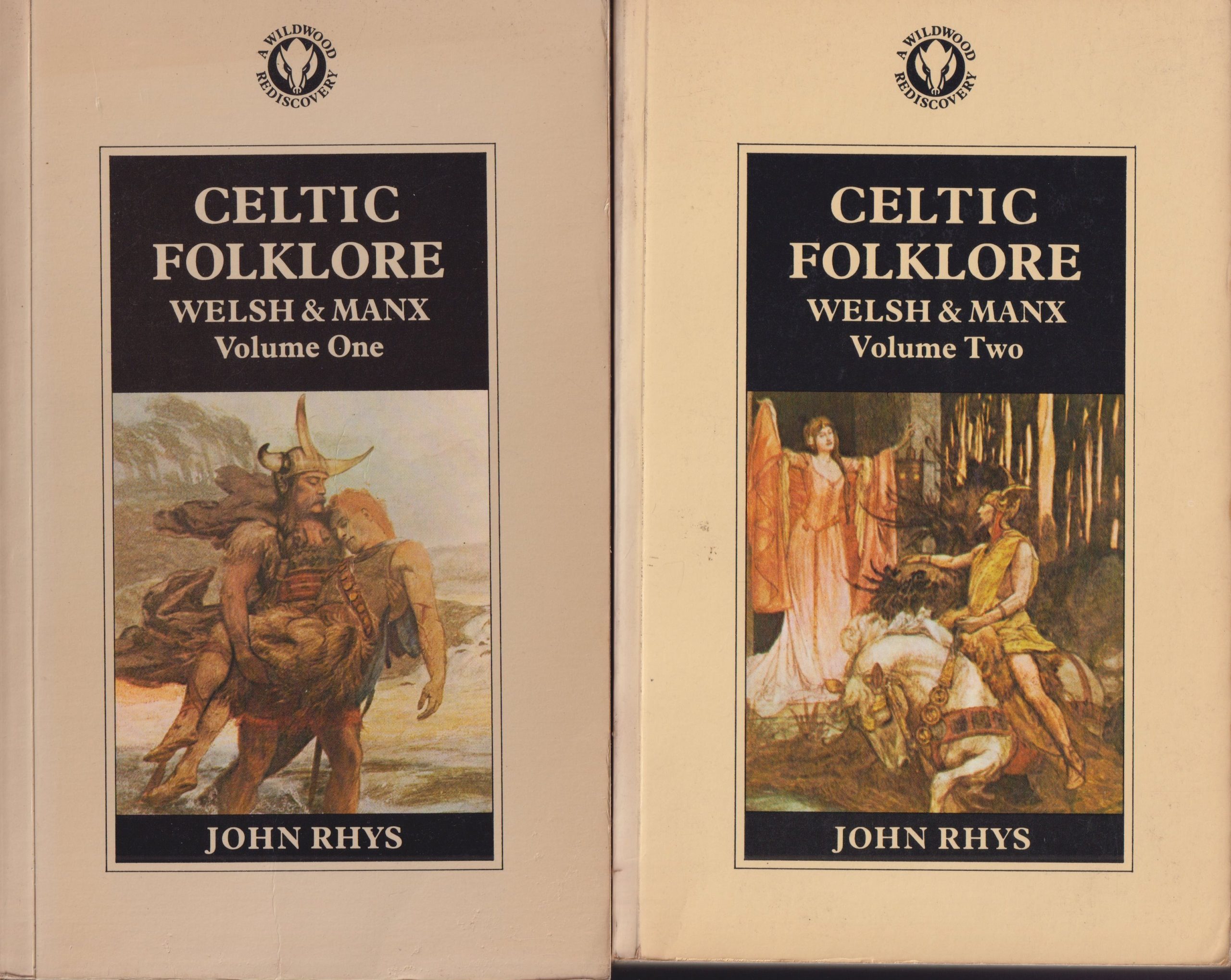John Rhys | Celtic Folklore: Welsh & Manx (TWO VOLUME SET) | Wildwood House | 1980, 1983 | A solid reading set which shows signs of age & use. Some wear to wraps, outer edges of pageblocks foxed, with a small mark on fore edge of vol. I. Text pages in very good condition. | £30