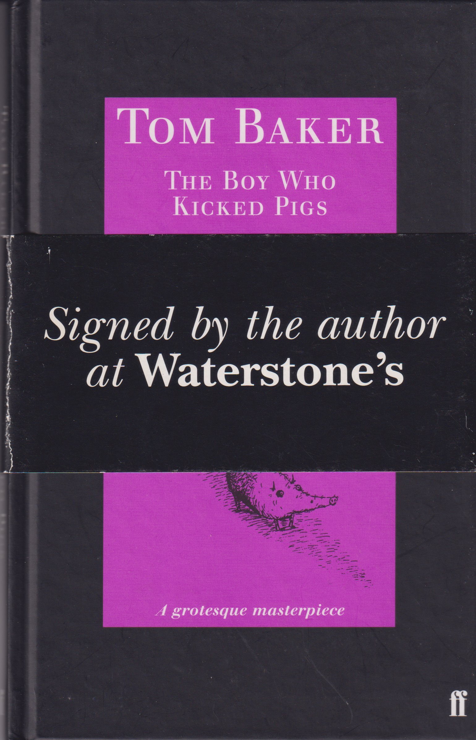Tom Baker | The Boy who Kicked Pigs (SIGNED COPY) | Faber | 1999 | First printing, signed by author on title page. Light wear to boards, promotional band rather chipped. | £100