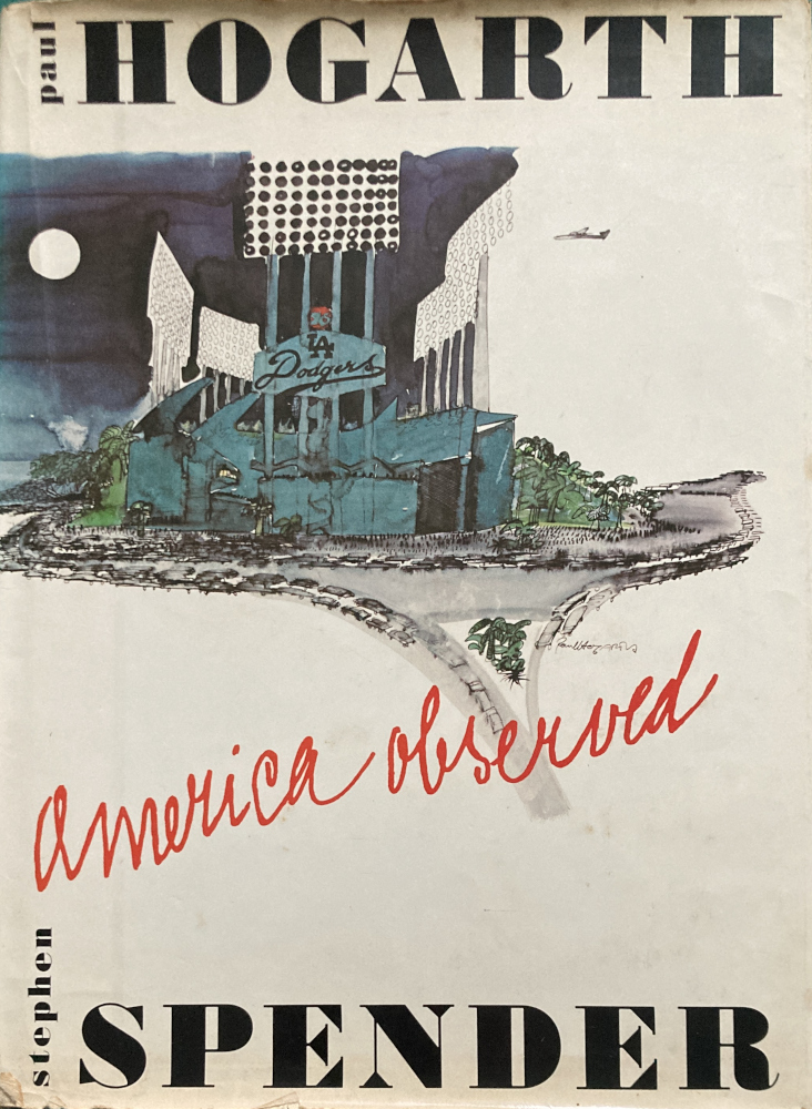 Paul Hogarth, Stephen Spender | America Observed | Clarkson N. Potter | 1979 | Some wear & foxing to jacket & boards. Reverse of jacket reinforced with tape. Outer edge of page block foxed, with rather obtrusive red ink remainder marks on each edge. Upper corner of ffep creased. Previous owner’s name obscured with liquid paper. Text pages & illustrations still look good. | £30